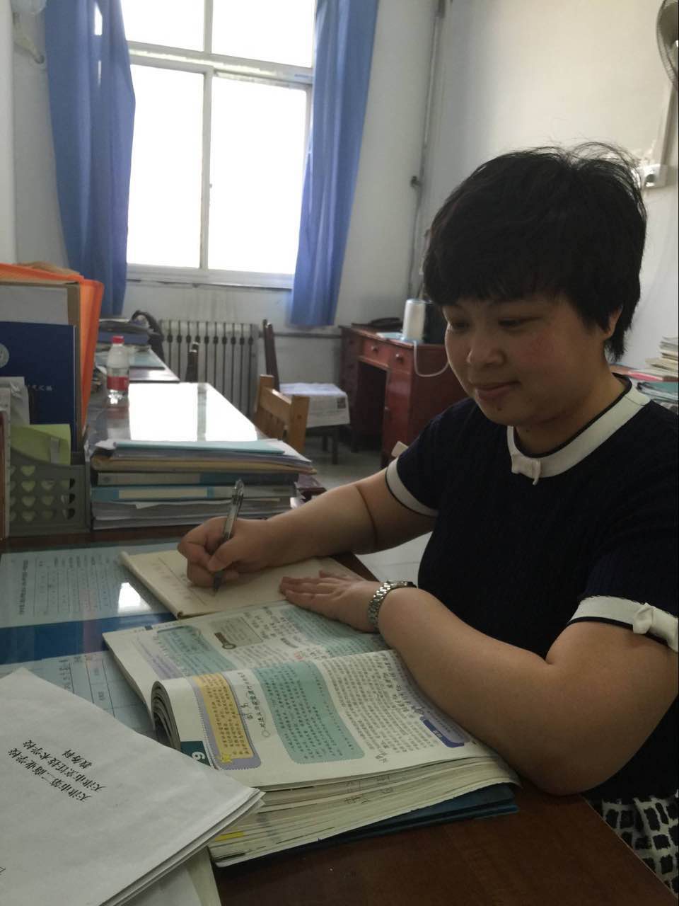 “欲影正者端其表,欲下廉者先其身”。作為一名基層黨支部書記,她深刻地體會(huì)到一名黨務(wù)工作者的一言一行在群眾眼中是何等重要;作為一名教師,她深知自己的一言一行又會(huì)對(duì)學(xué)生產(chǎn)生怎樣的影響。她曾說過:“我要對(duì)自己高標(biāo)準(zhǔn),嚴(yán)要求,不干則已,干就干好”。支部工作中,她認(rèn)真貫徹落實(shí)黨的路線方針政策和上級(jí)黨組織的決議決定,以日常教育教學(xué)工作促黨建,以提高隊(duì)伍素質(zhì)為重點(diǎn),以強(qiáng)化管理為手段,抓好思想政治工作,加強(qiáng)自身的道德品質(zhì)修養(yǎng),努力發(fā)揮好共產(chǎn)黨員先鋒模范的作用。除了支部書記和教研室主任工作以外,她每周還承擔(dān)著20多節(jié)德育課的教學(xué)任務(wù),面對(duì)如此繁重的工作,她從不抱怨,更從不耽誤,均能按時(shí)按質(zhì)完成各項(xiàng)工作。她家住塘沽,每天上下班路途遙遠(yuǎn),但她從不搞特殊,嚴(yán)格按照學(xué)校各項(xiàng)規(guī)章制度辦事。